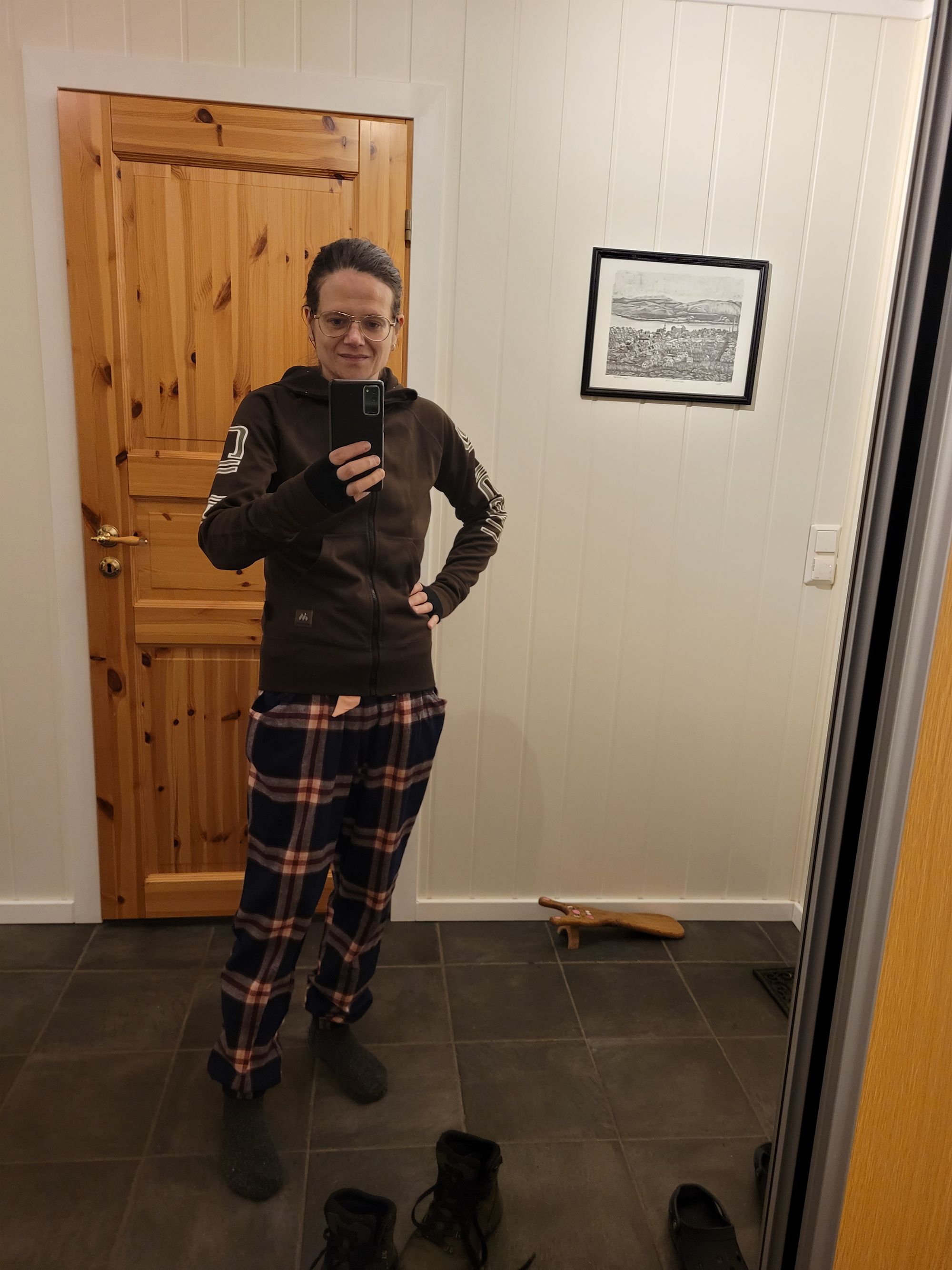 Men i kveld var jeg ute og gikk tur, og det var helt nydelig. Endelig vindstille, jeg så noen stjerner og jeg rakk å bli ordentlig gjennomvarm før jeg var tilbake etter fem kilometer - og blid! Nå er det meldt pent vær fremover, hurra!