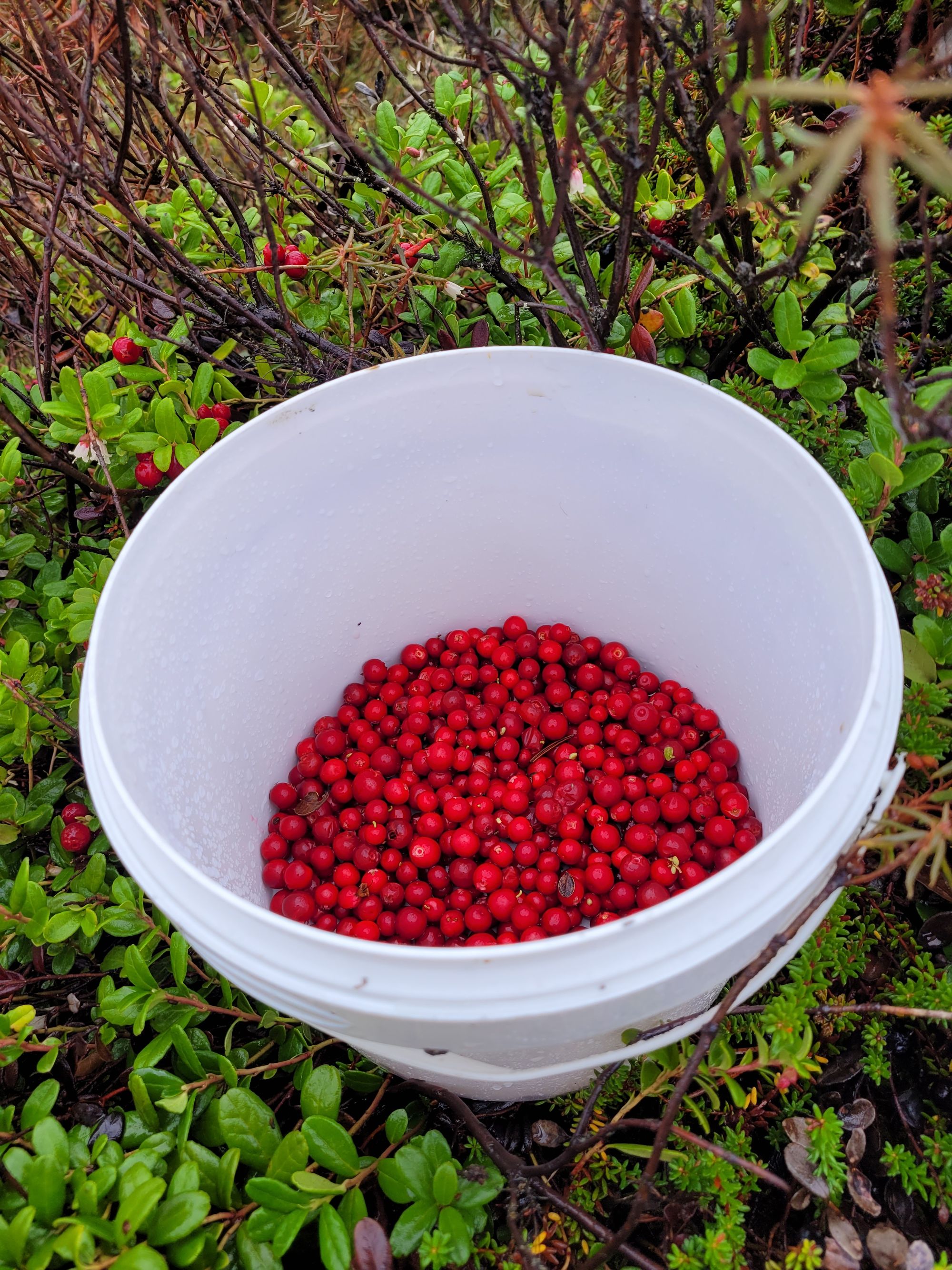 Det var masse, masse blåbær, men her nede i lavlandet er nok sesongen stort sett over. Kun noen få bær var spenstige nok til å være gode, og jeg ga meg med den sorten ganske fort og kjørte til høyspentlinja for å plukke tyttebær istedenfor. Jeg hadde en plan om å lage en slags trollkrempikekyss, men det ble bare en spektakulær misære. La oss ikke snakke mer om det. Da kan vi heller snakke om tyttebærcurden som ble helt vellykket og som jeg skal prøve til brien min i morgen tidlig.
