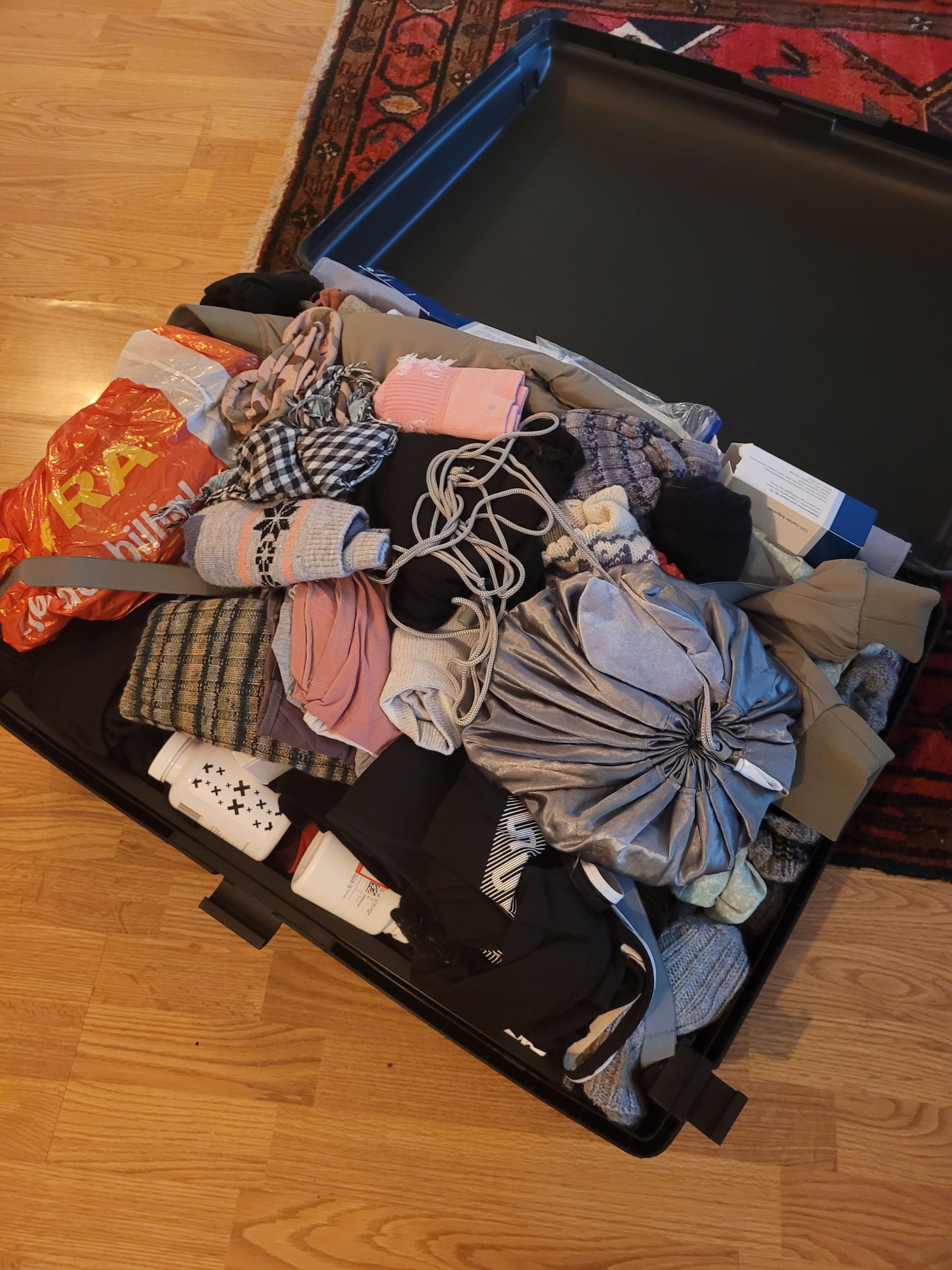 Den sedvanlige reiseangsten har holdt seg noenlunde på avstand. Det jeg gruer meg mest til er å forflytte meg selv og kofferten opp til E6 før klokka 0453 i morgen tidlig. Det er en gammeldags koffert som man triller på siden noe som gjør den vaklevoren. Jeg er glad jeg greide å kvitte meg med trillekofferten jeg egentlig hadde tenkt å ta med. Istedenfor lånte jeg en PC-sekk av arvingen, noe han motvillig gikk med på. Jeg har sjekket inn i appen og dobbelt- og trippelsjekket at alt av datoer og lignende stemmer. Jeg tror jaggu jeg er klar.