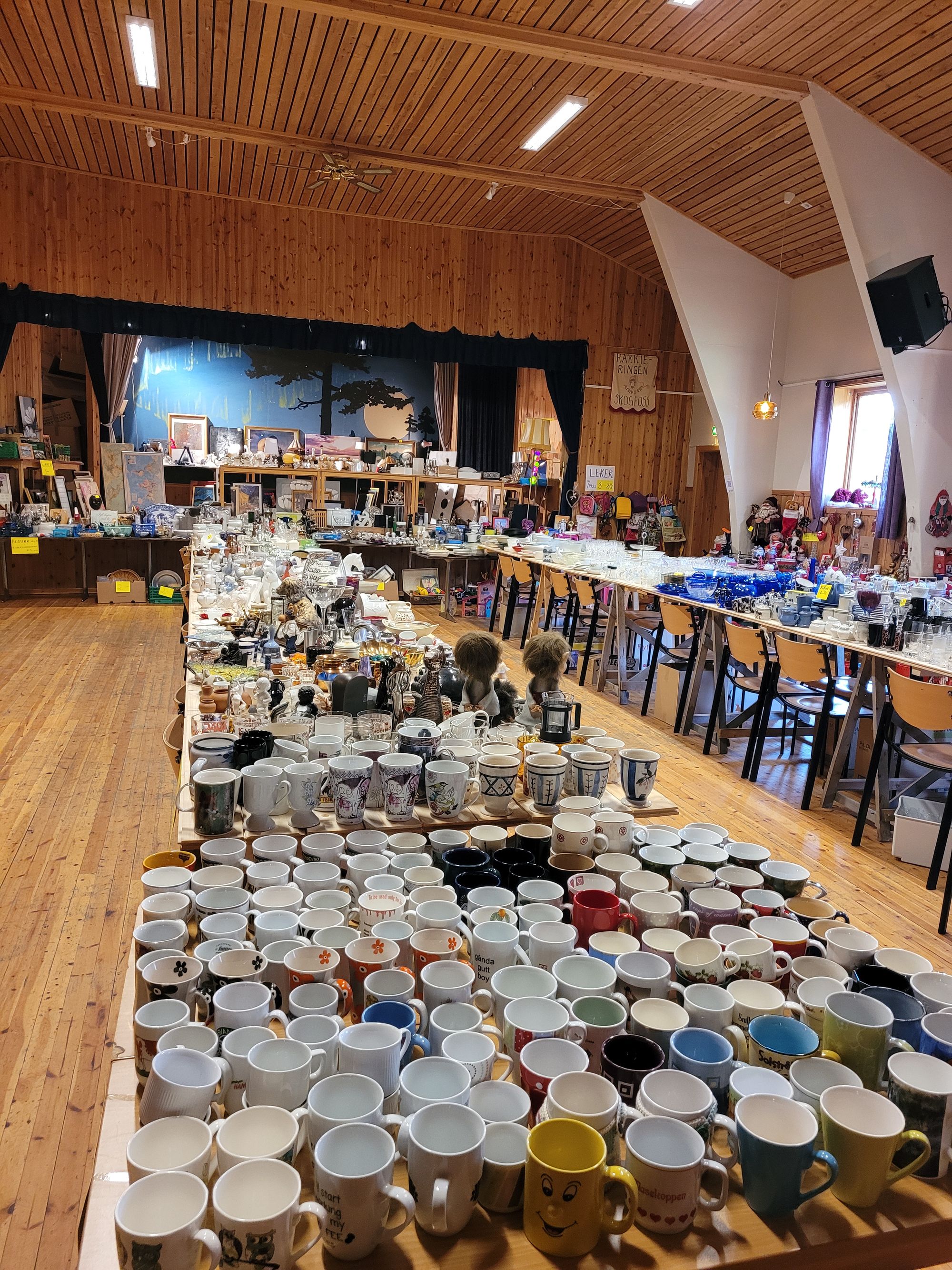 Da jeg var her i juli var allerede forberedelsene i full gang, og telefonene gikk frem og tilbake med planlegging av hvordan det hele skulle organiseres. Loppemarkedet er tilsynelatende kjent og ettertraktet i hele Øst-Finnmark og Sagát har vært her for å gjøre intervjuer. Faren min har vært parkeringsvakt - bilene må tilvises plasser for at det ikke skal bli kaos utenfor idrettshuset på Skogfoss. Det hele er en voldsom affære.